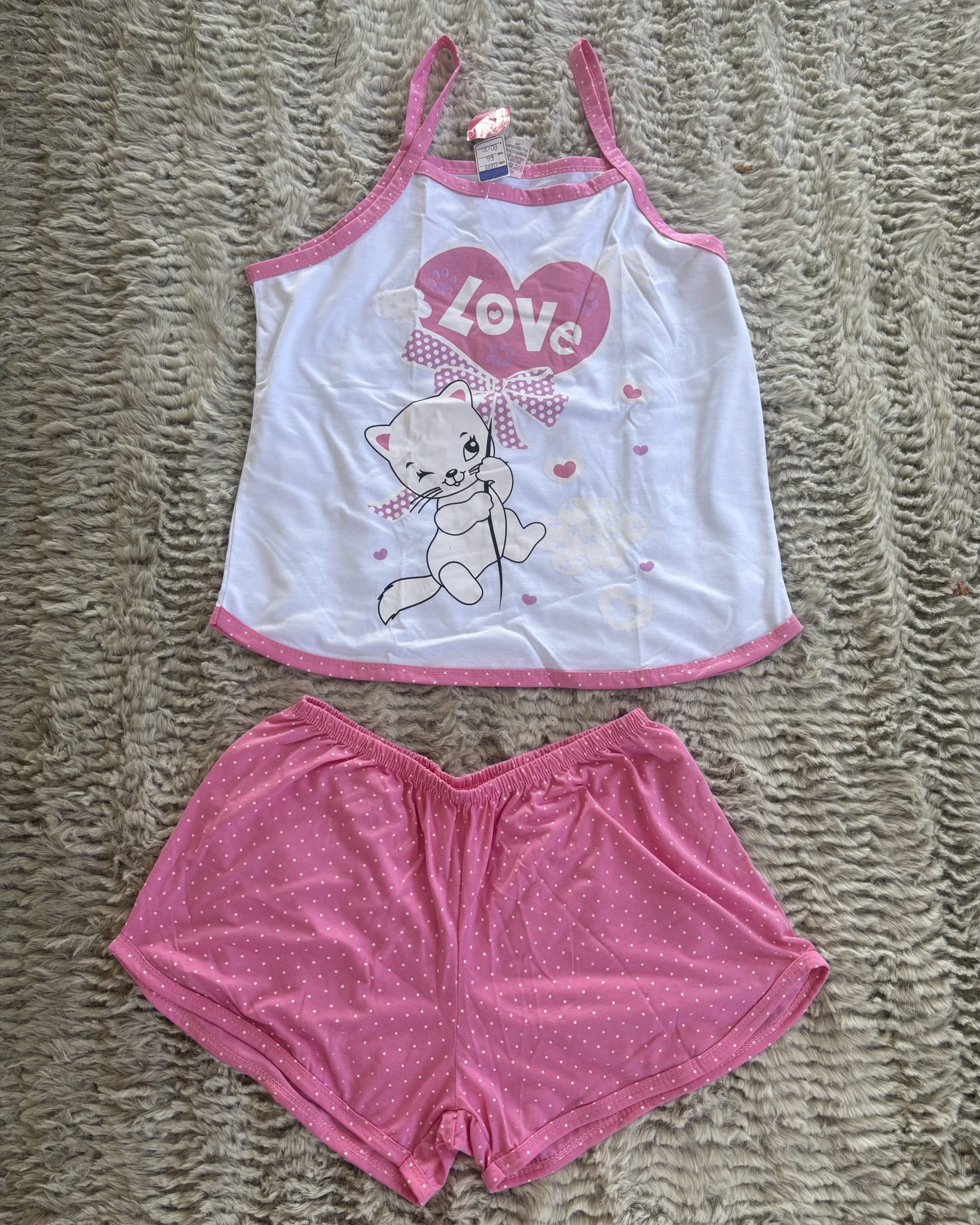 Baby dool de blusa com short de bolinha rosa. TAM GG.