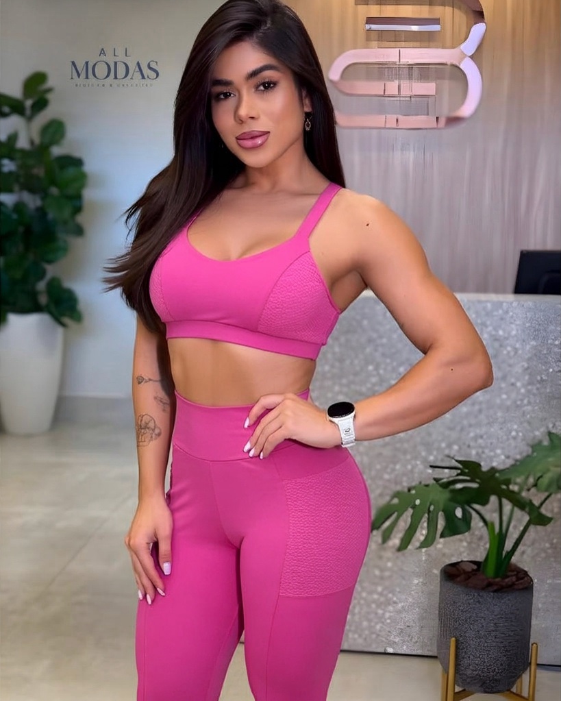 Conjunto de academia de top com bojo Jó e calça com bolso TAM M.