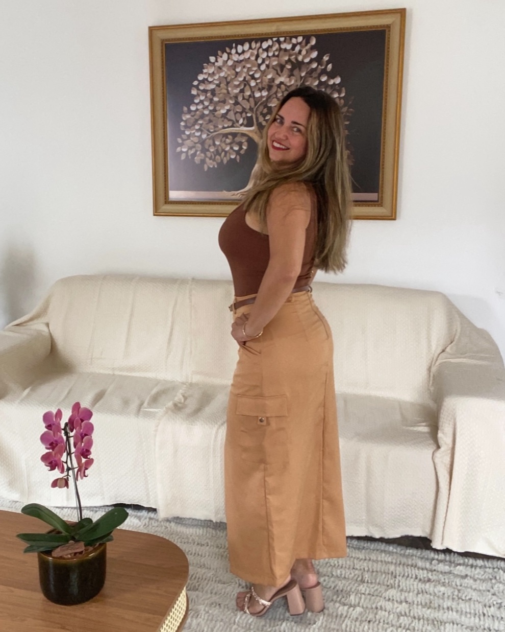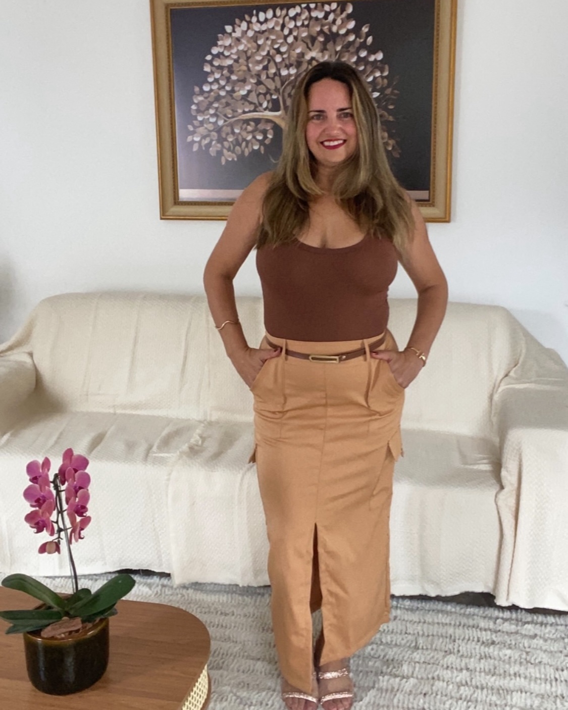 Saia alfaiataria com bolsos e fenda na frente
